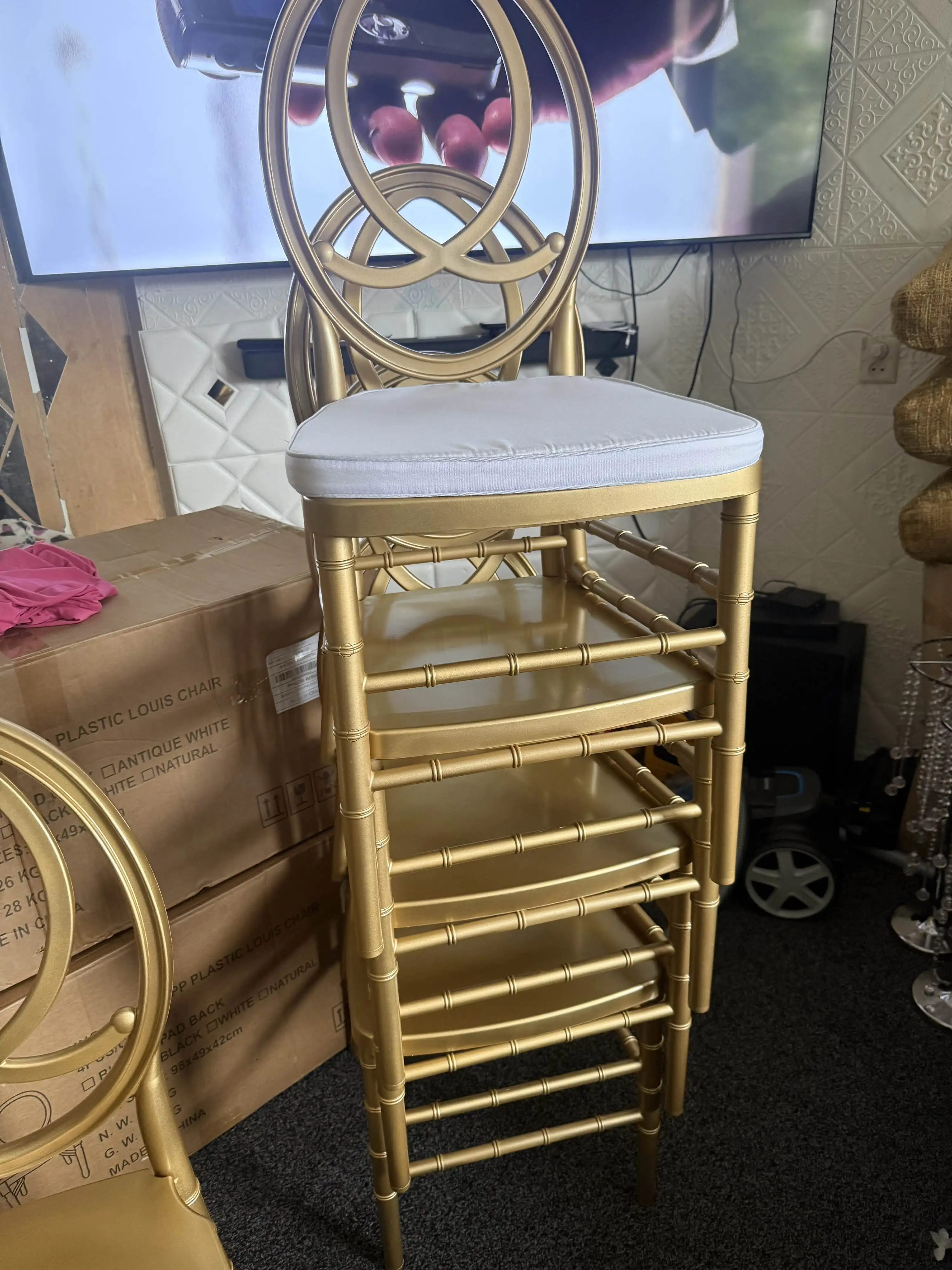 Ingrosso eventi per banchetti impilabili rimovibili per matrimoni hotel eleganti sedie in resina oro fenice